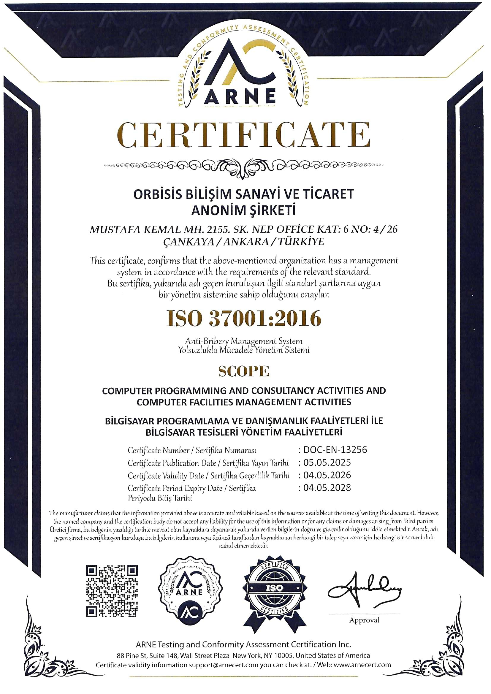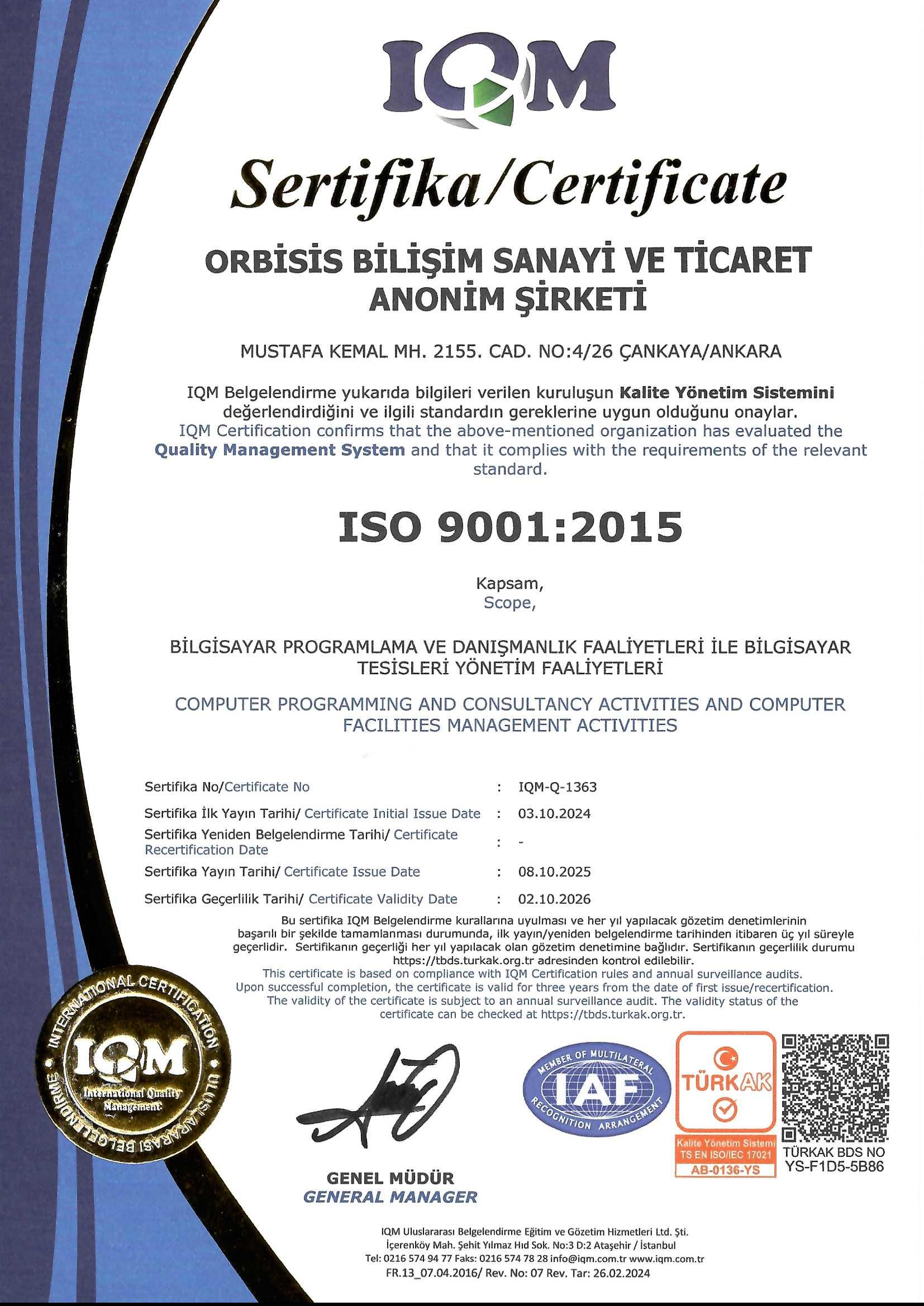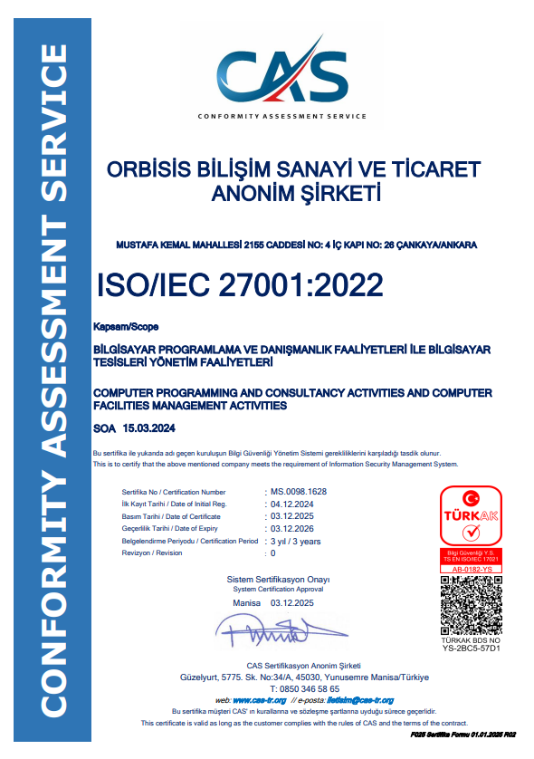 Orbisis olarak, kalite ve güvenilirlik standartlarımızı belgeleyen sertifikalarımız ile sektörde öncü konumumuzu sürdürüyoruz. Aşağıda kurumsal belgelerimizi inceleyebilirsiniz.